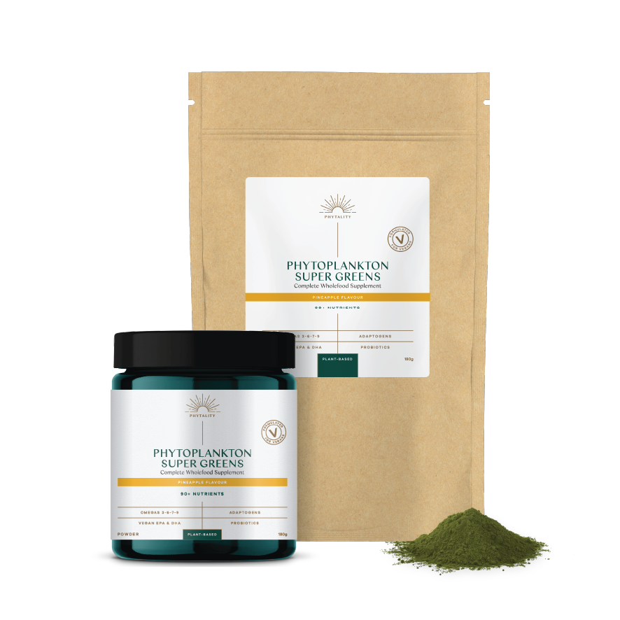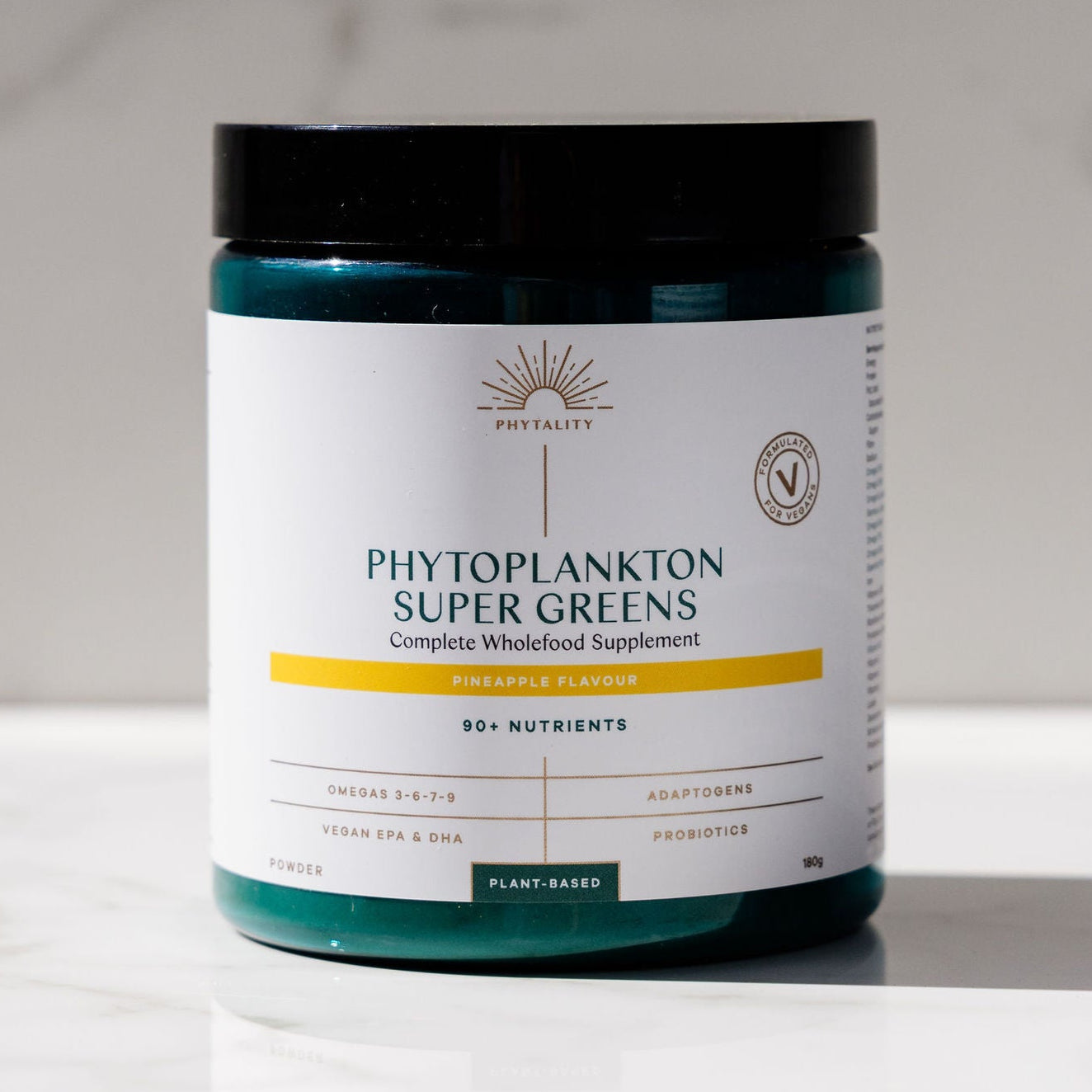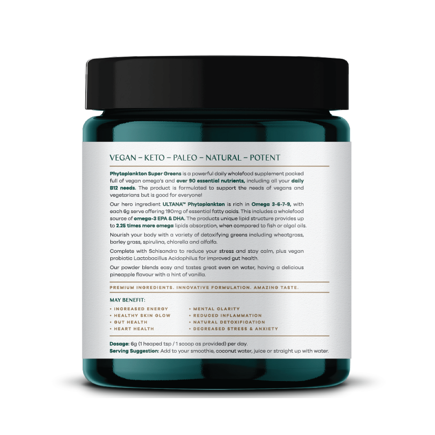 This powerful daily supplement combines alkaline superfoods, antioxidants, adaptogens, probiotics, and hero ingredient Phytoplankton.