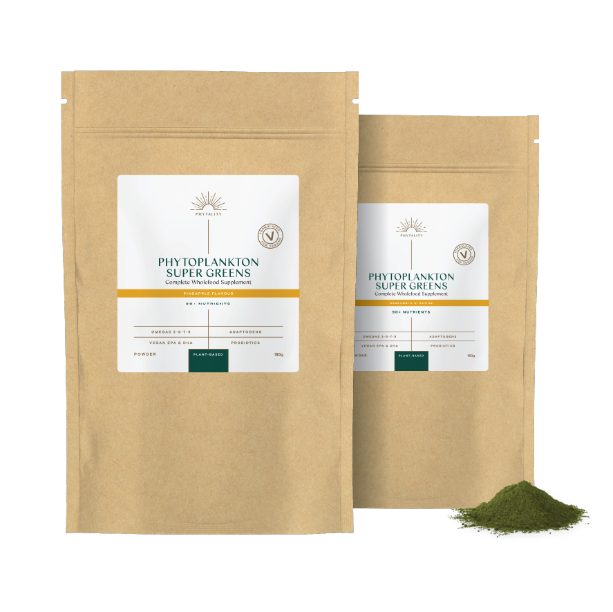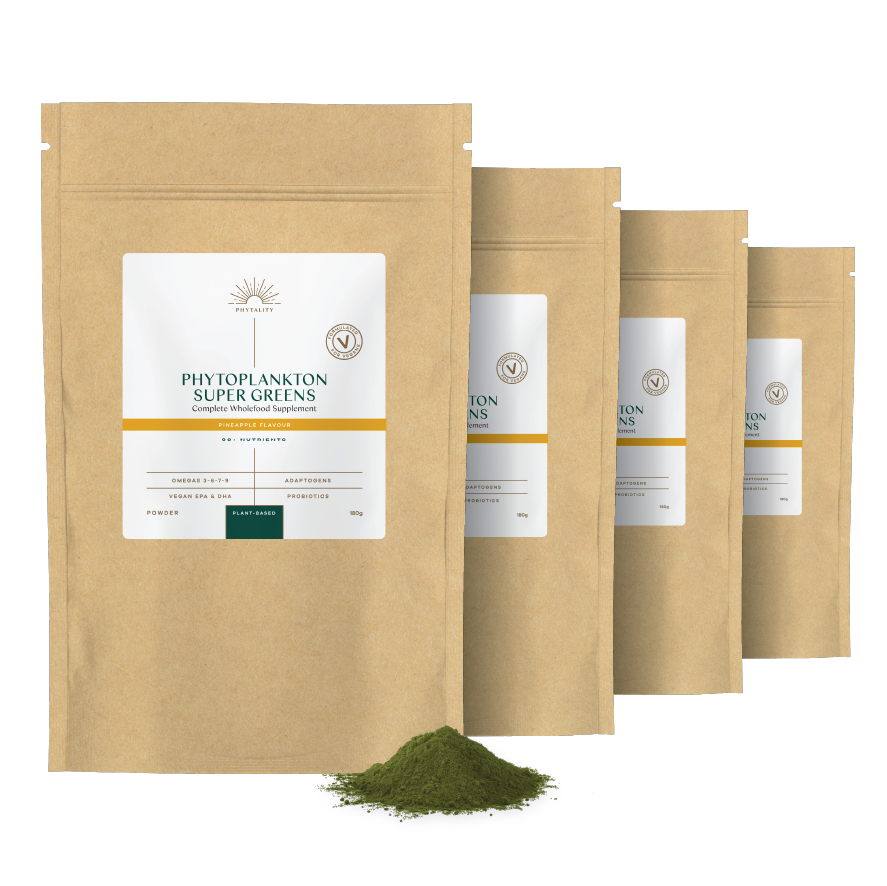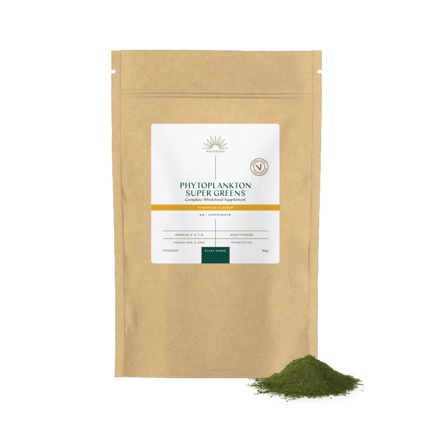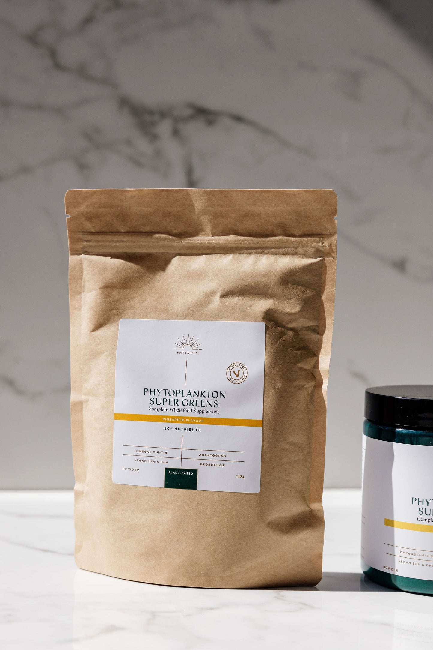 This powerful daily supplement combines alkaline superfoods, antioxidants, adaptogens, probiotics, and hero ingredient Phytoplankton.