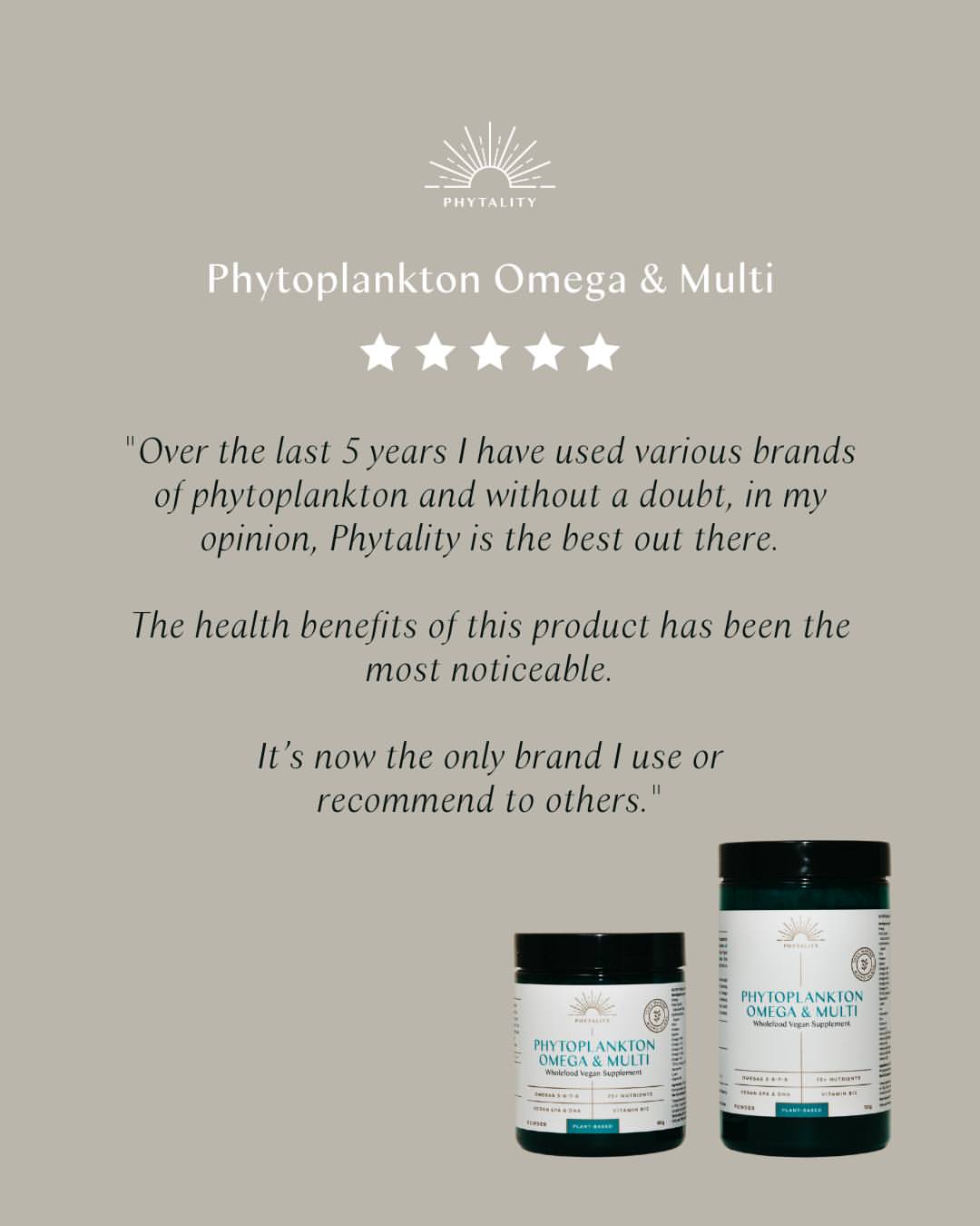 "As a plant based clinical naturopath and registered nurse, I choose Phytality’s omega-3 because it delivers pure, bioavailable DHA and EPA directly from algae — where fish get it from in the first place. I love that Phytality’s range is free from heavy metals and ocean contaminants, is sustainably sourced and also is clinically effective.